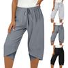 These women's cropped pants are crafted from a soft, breathable cotton and linen blend, ensuring all-day comfort and lightweight wear. Featuring a solid color design and wide-leg cut, they offer a flattering silhouette that enhances your leg shape with a casual yet elegant look.