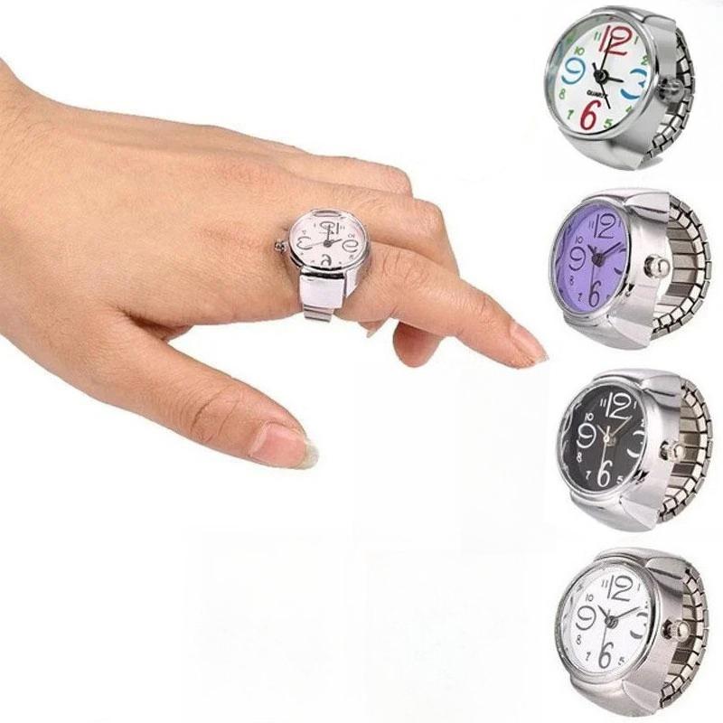 שעון טבעת אצבע עגול אלסטי קוורץ יצירתי לגברים ונשים, שעון זוגי אופנתי לאוהבים
