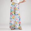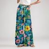 Women's Loose Casual Floral Print Wide Leg Pants With Elastic Waist Drawstring And Pocket Pants