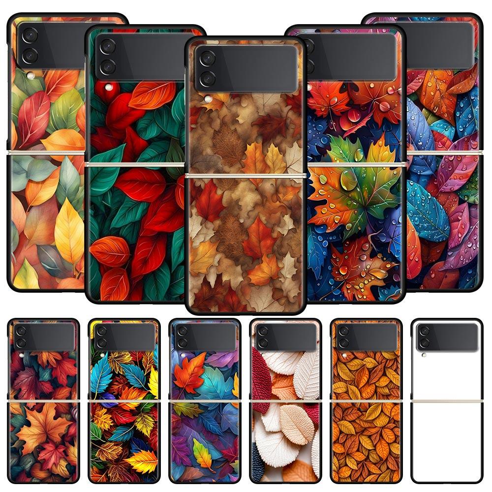 Cartoon Leaf Hard PC Phone Case For Samsung Galaxy Z Flip 7 6 5 4 Black Cover For Galaxy Z Flip 3 Foldable Shell Fundas Capa Bag
