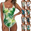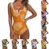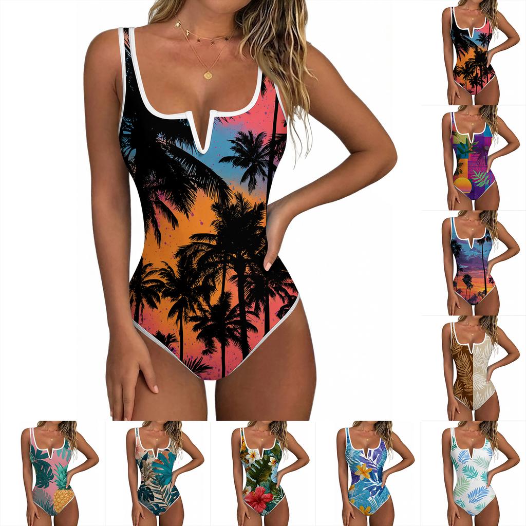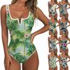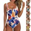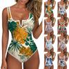 Women's Color-Blocked Hawaiian Floral Print Backless Fashion One-Piece Swimsuit