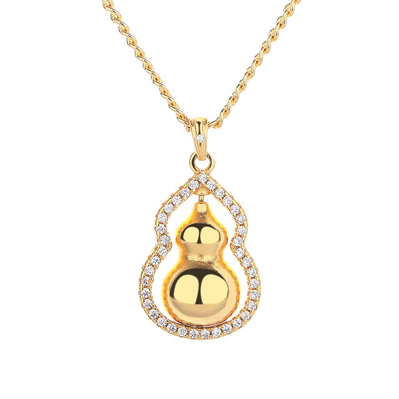 New chinoiserie necklace women's copper gold-plated gourd pendant casualclassy chinese ancient style design necklace
