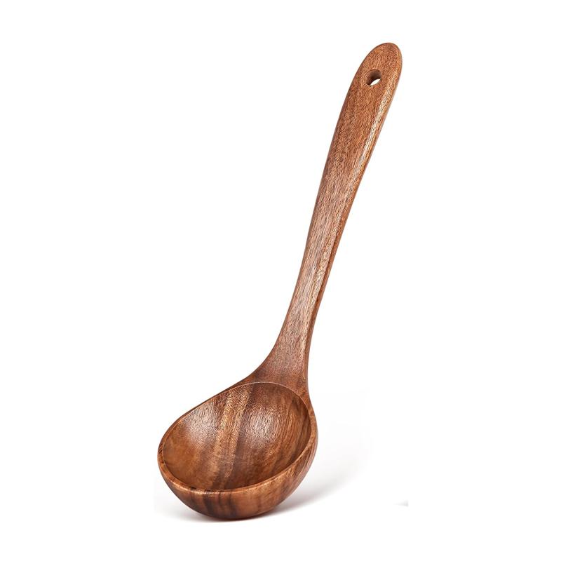 Wooden Soup Spoon 10Inch Teak Soup Ladle Natural Wood Serving Spoon Long Handle Deep Scooper Cooking Soup Spoon Kitchen Supplies