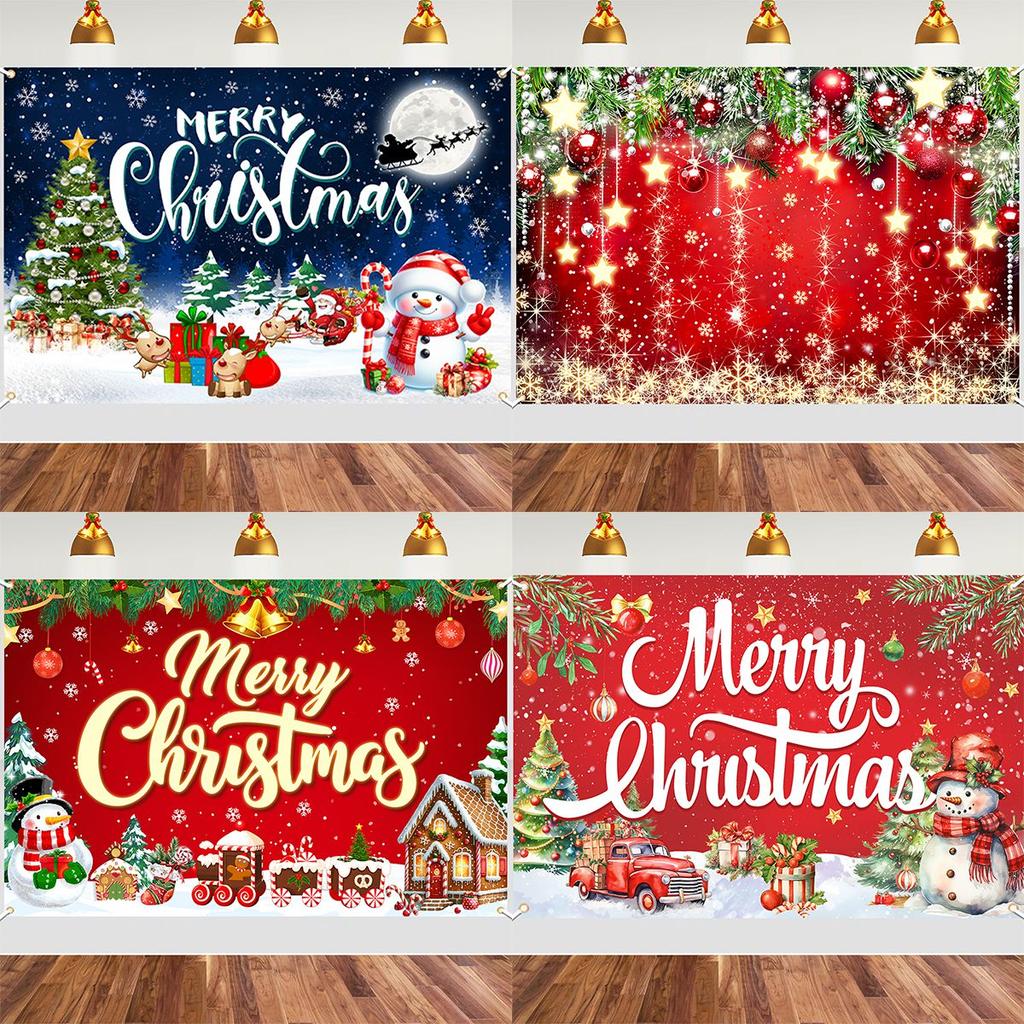Merry Christmas Backdrop Banner Santa Snowman Background Christmas Decorations for Home2026 Navidad Noel Xmas Gifts NewYear 2026