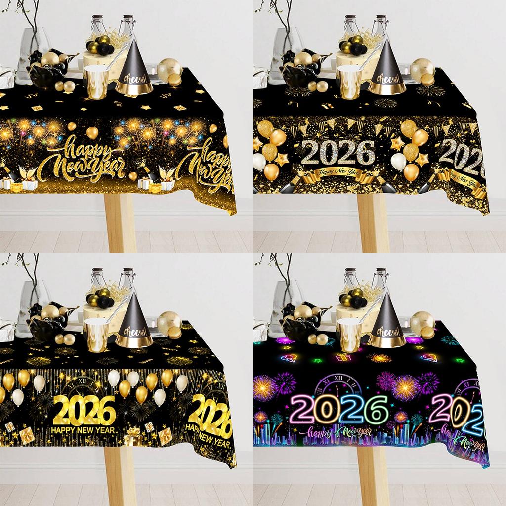 Black Gold New Year Disposable Tablecloth Happy New Year Party Decorations for Home 2026 Kitchen Dinning Plastic Table Cover