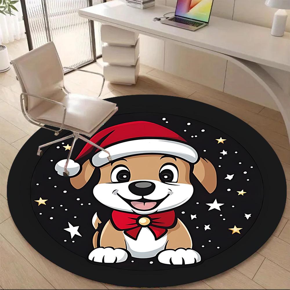 1PC Christmas Pup Office Round Area Rug, Indoor Mat Suitable ForOffice, Under Office Chairs Bedroom Living Room Home Decor, Room Deco f105