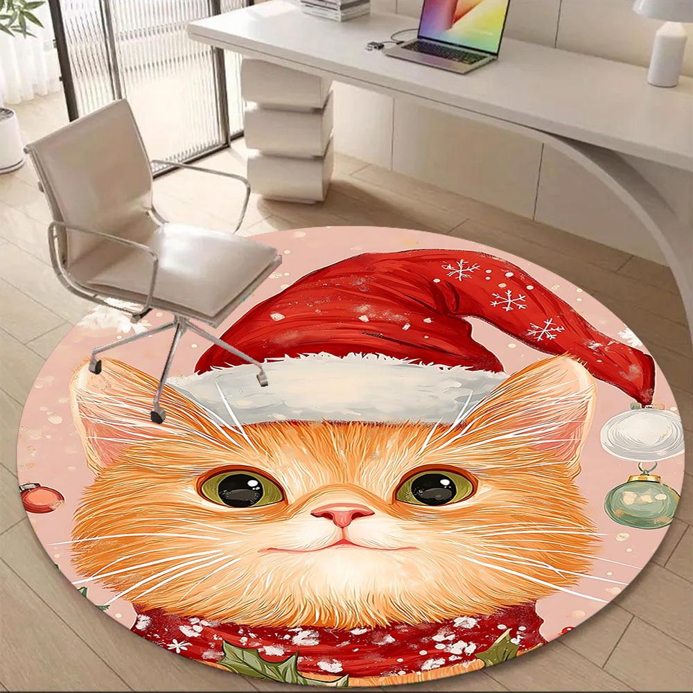 1PC Christmas Cat Office Round Area Rug, Indoor Mat Suitable ForOffice, Under Office Chairs Bedroom Living Room Home Decor, Room Deco f015