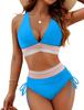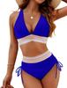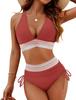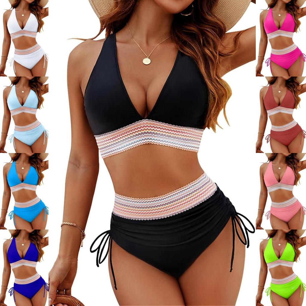 Women's Swimsuit Solid Color Stitching Sexy High Waist Drawstring Tie Split Swimsuit Bikini Suit Beach Wear