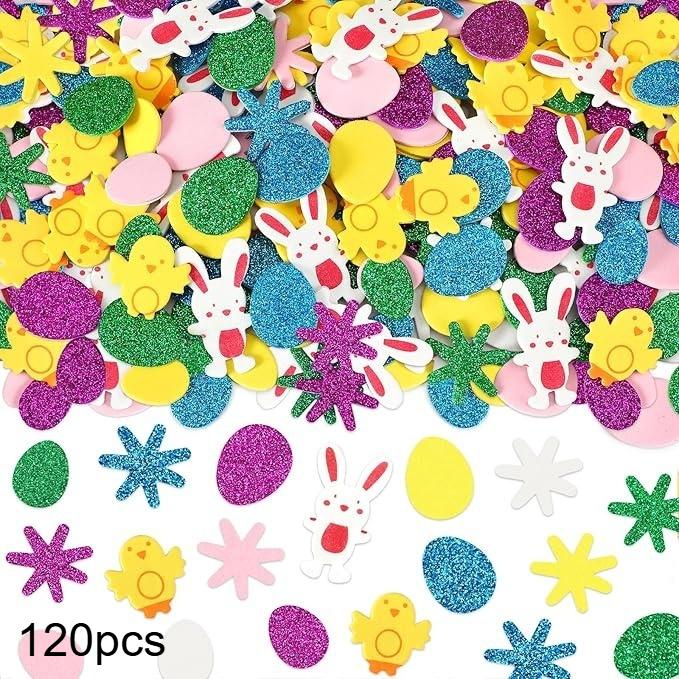 120pcs Easter Bunny and Chicken Egg Shaped 3D Stickers Cartoon Pattern Self-adhesive Single Use Spring Season Party Decoration