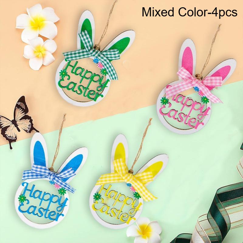 4pcs Wooden Easter Egg Decorations Easter Party Decorations Handicraft Hanging Easter Decorations Outdoor Office Home Decoration