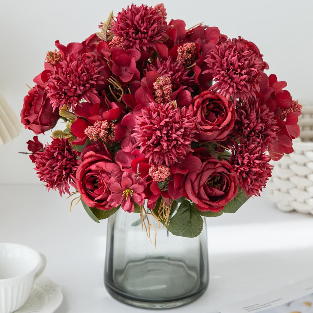 Artificial flower rose decora wedding bridal bouquet garden Valentine's Silk Peony Embroidered Ball Dried Flower Vase Board Gift