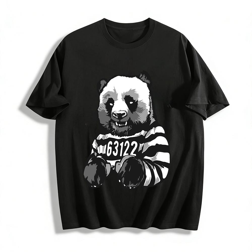Funny Prisoner Panda Print Cool Unisex Casual Crew Neck T-Shirt Pure cotton T-shirt