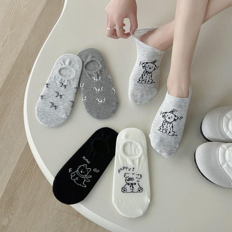 Cartoon Dog Cute Sock Slippers Cotton Thin Breathable Summer Invisible No Show Socks Silicone Non-slip Low Cut Ankle Boat Socks