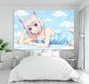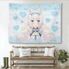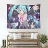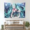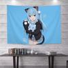Neko Cat Girl Anime Tapestry Blue Hair Miku Print Polyester Wall Hanging Kawaii Otaku Decor for Bedroom Living Room