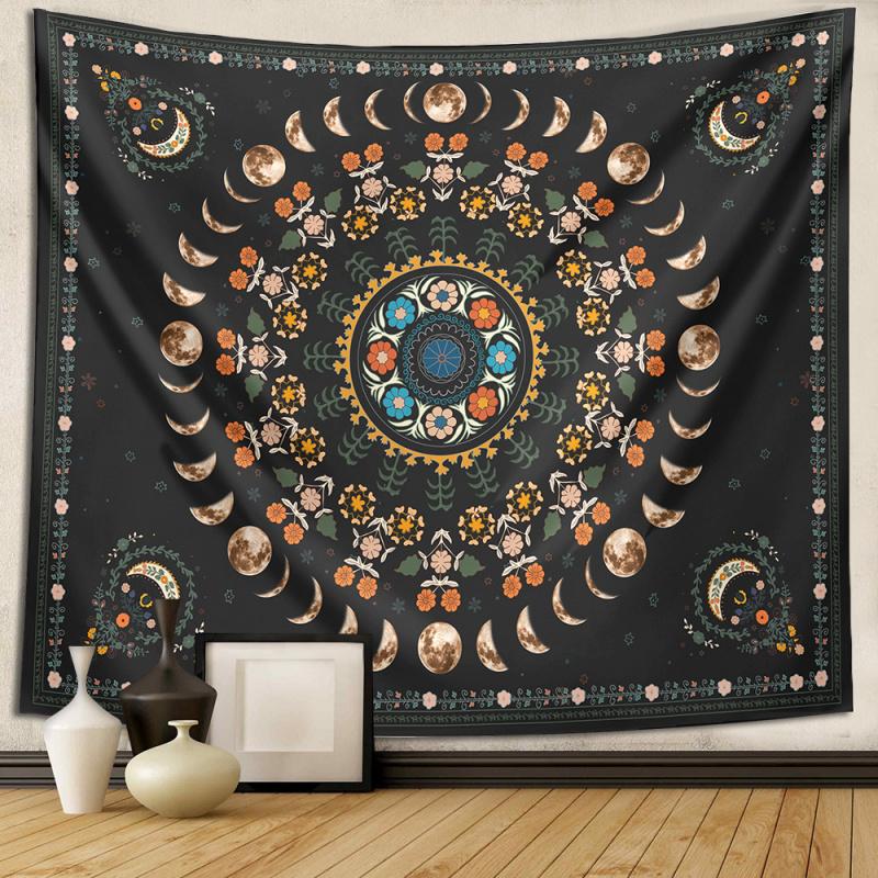 VIKAMA Bohemian Moon Phase Flower Tapestry Vintage Taro Style Wall Decoration Bedroom Living Room Sofa Background Wall Decor