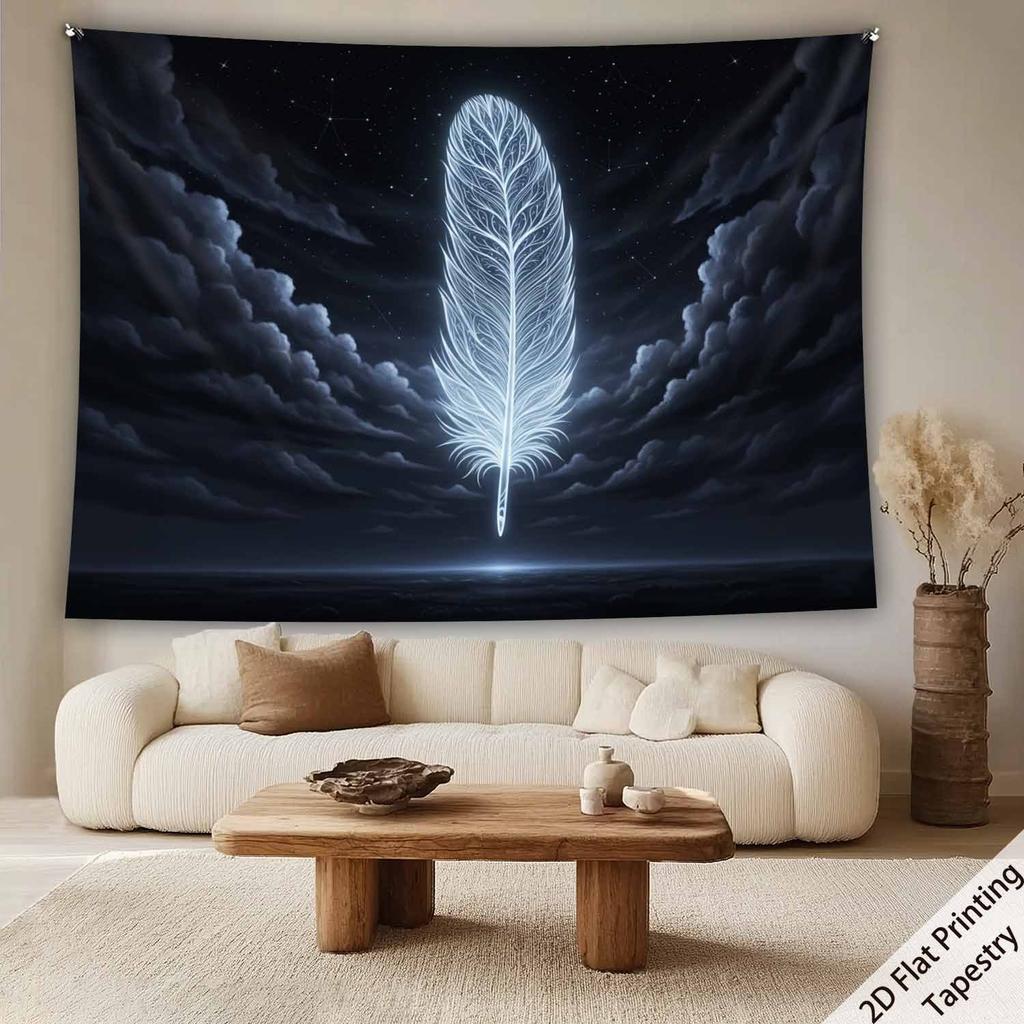 Feathers floating in the starry sky Digital printing polyester wall tapestry suitable for use in living rooms offices bars party