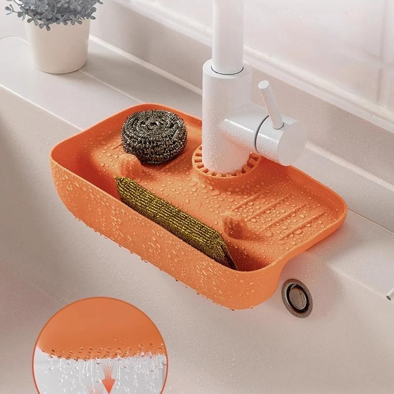 Drain Rack Household Silicone Sink Faucet Splashproof Water Collection Pad Sponge Steel Wool Gadget Storage Box