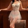 Erotic underwear French mesh sexy suspender nightdress hollow embroidery pure lace perspective girl