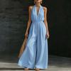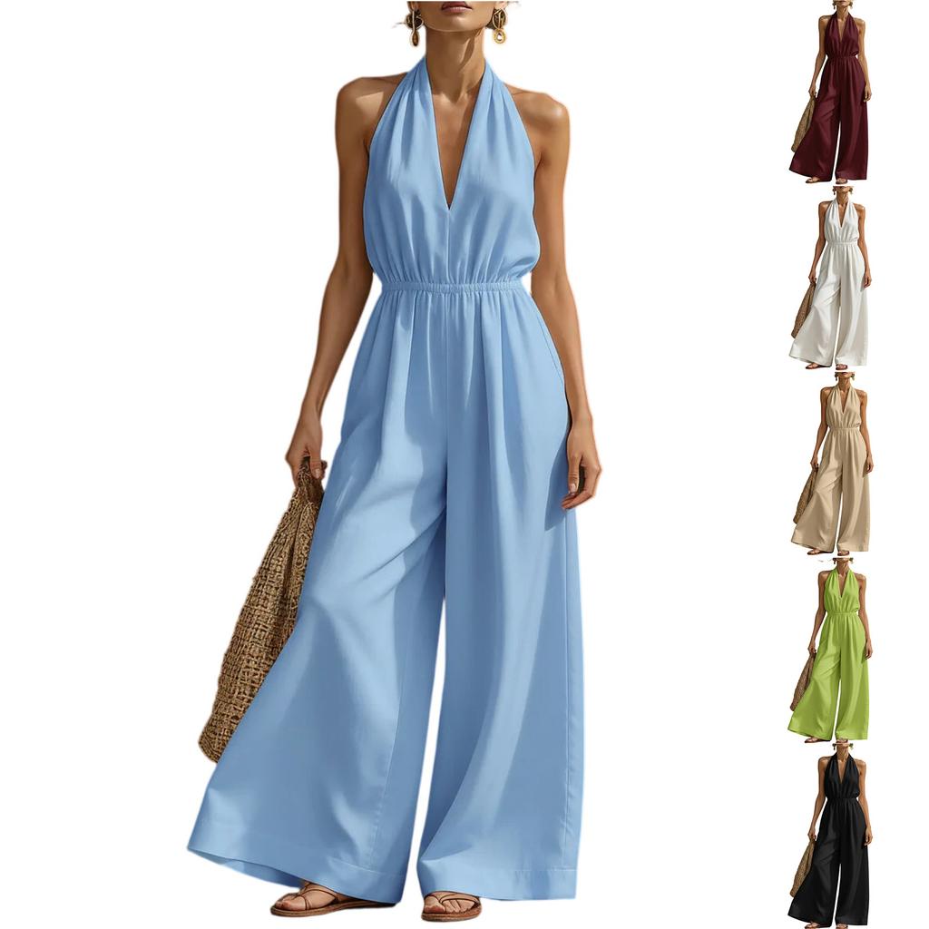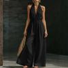 Women's V-neck Wide-leg Sleeveless Belted Long Jumpsuit