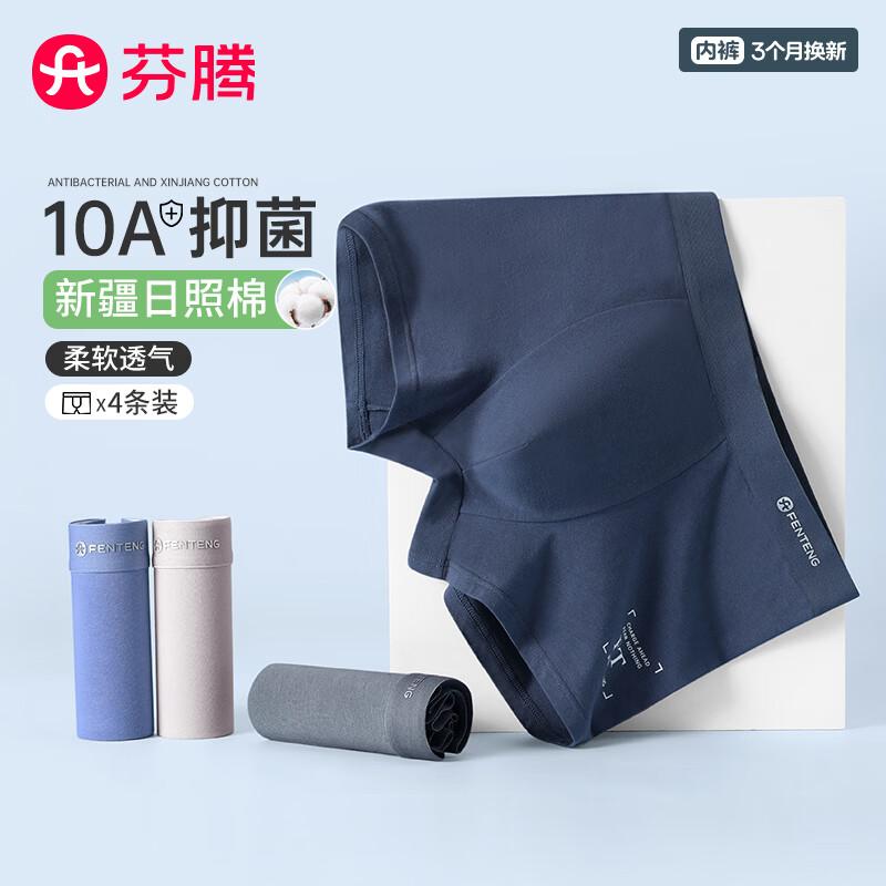 Fenteng Men's Xinjiang Cotton Antibacterial Boxer Briefs 4-Pack