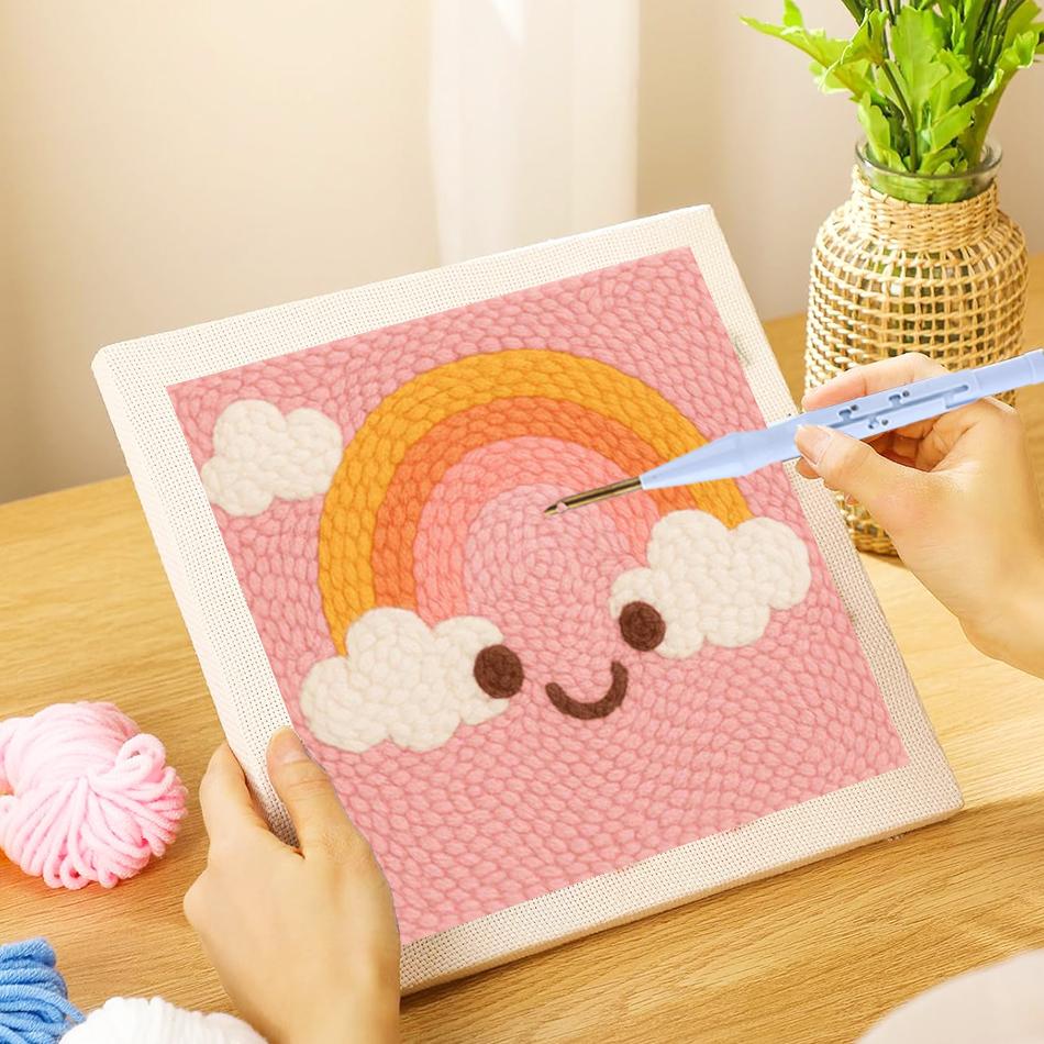 ערכת מחט קודם חלומות קשת בענן ערכת יצירה DIY מסגרת רקמה במחט קודם ריבועית לקישוט קיר אמנות תפירה מתנה מושלמת