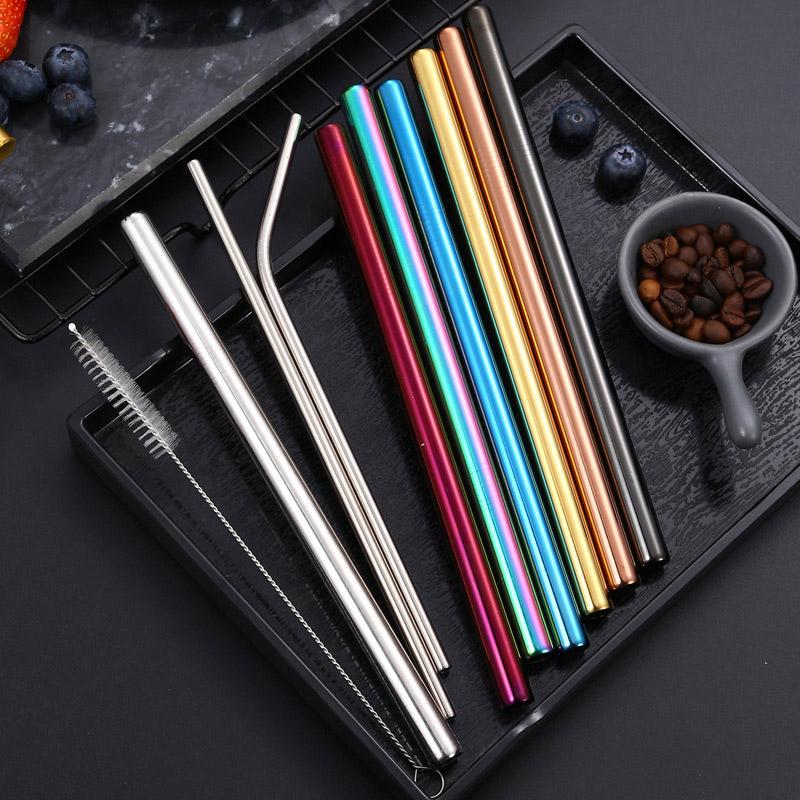 3Pcs Stainless Steel Straw Sets Metal Reusable Straight Bent Drinking Straw With Cleaning Brush Party Juice Drinks Utensils