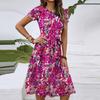 Women's Spring And Summer Casual Round Neck Short Sleeve Waist Floral Print Midi Dress