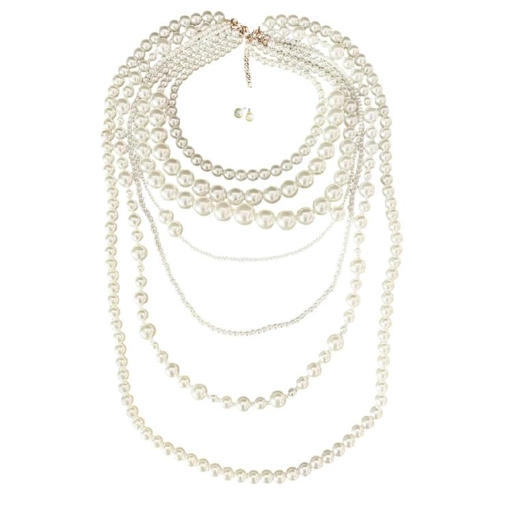 Luxurious Layered designs This 7 layer gradient pearl necklace set creates beautiful dimensional visual effects, breaking through the limitations of traditional single layer necklaces. Perfect for highlighting elegance at banquets and weddings, especially when paired with off shoulder dresses.