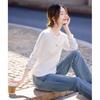TERRE BLEUE Women's V-Neck Mesh Splicing Long Sleeve T-shirt