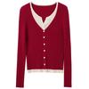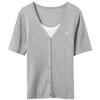 Sancai Plus Size Linen Acetate Blend Faux Two-Piece Knit Top