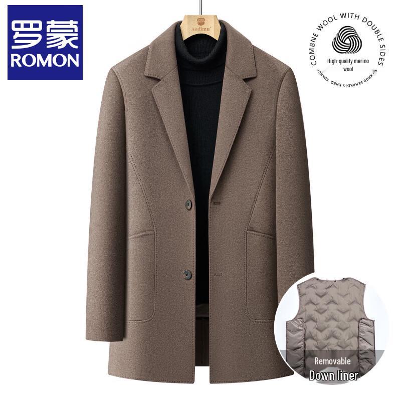 Romon Men's Mid-Length Wool Blend Overcoat with Detachable Goose Down Liner