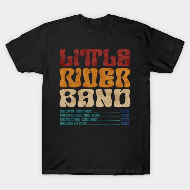 Men Black Print T-shirt Vintage Little River Band Grunge No-Cut Transfer Paper Print Cotton Tshirt