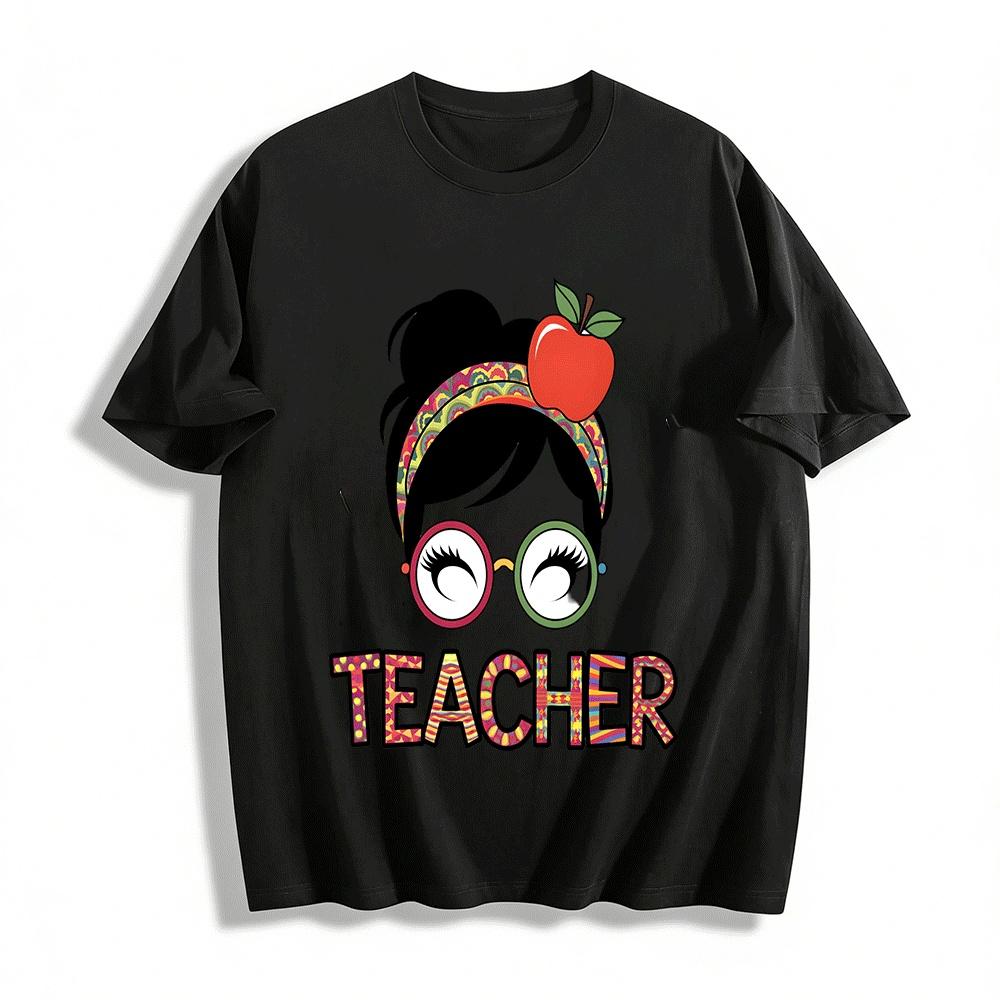 Cute Apple Headband Glasses Teacher Themed Graphic Casual Top Pure cotton T-shirt