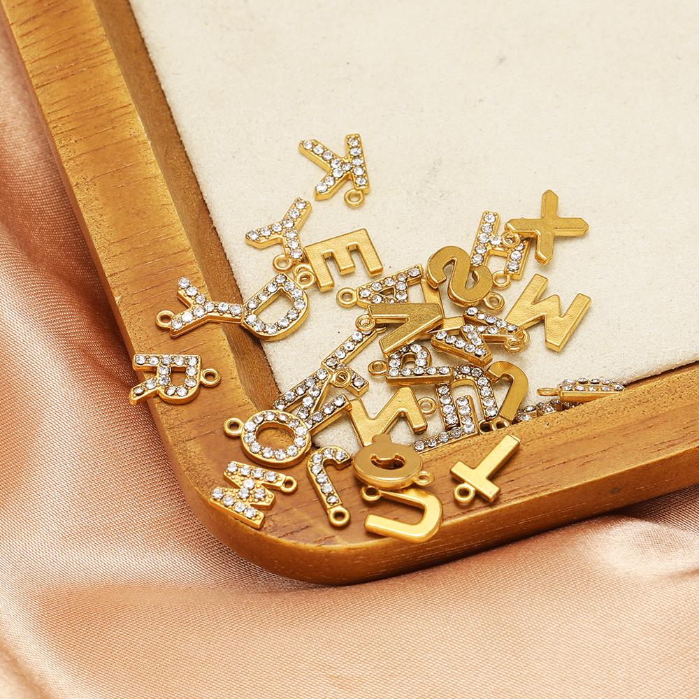 5pcs Stainless Steel Gold Rhinestone Letters Charms DIY Women Girl Alphabet Necklace Pendants Jewelry Bracelet Earrings Making