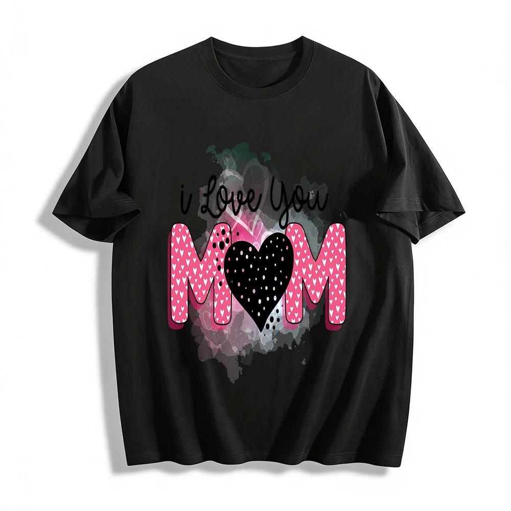 I Love You Mom Heart Print Casual Short Sleeve T-Shirt Pure cotton T-shirt