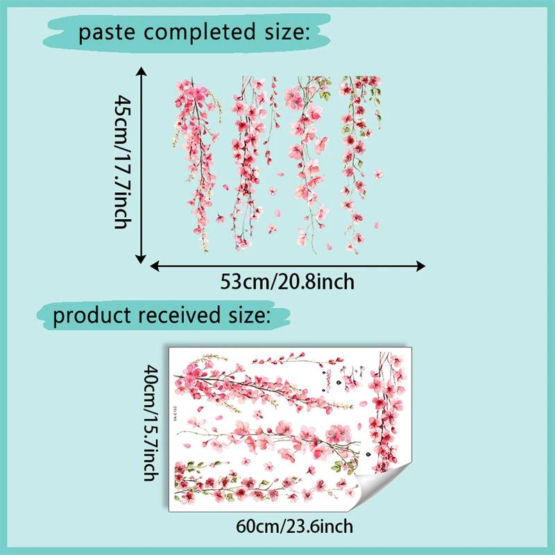 Beautiful Vine Pink Flower Wall Stickers for Living Room Bedroom Wall Decor Girl Room Decoration Children's Wall Decal Wallpaper