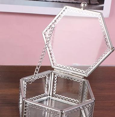 Glass Hexagon Storage Box Perfect for Jewelry, Rings, Earrings, Beads or Coins, Keepsake Organizer and Display Case Container