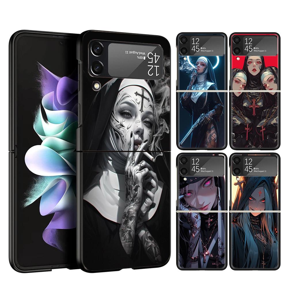 Dark Demon Nun Phone Case For Samsung Galaxy Z Flip 7 6 5 4 3 5G Cover ZFlip7 ZFlip6 ZFlip4 ZFlip5 ZFlip3 Coque Fundas Galaxy Z