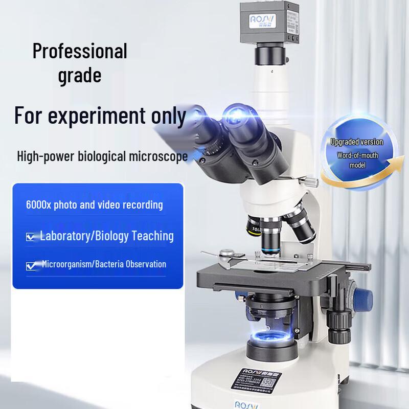 The AOSVI XSP-H1600 Upgraded Student Microscope is a high-power optical instrument for school laboratories. It allows students to observe mites, bacteria, and cells, and comes with a camera for enhanced educational use, ideal for middle school studies and exams.