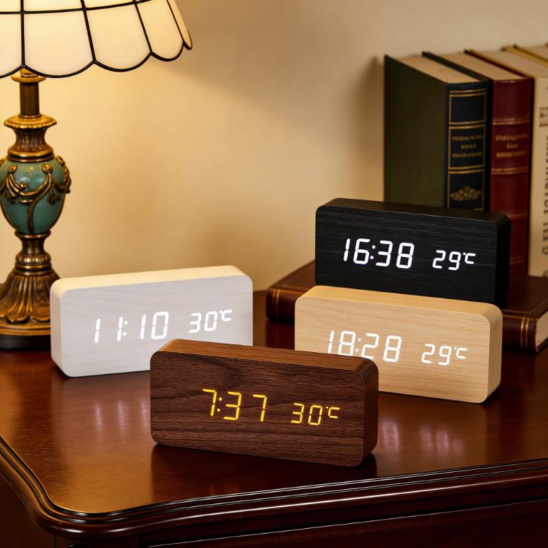 Retro Wooden Digital Alarm Clock Silent LED Luminous Creative Electronic Timepiece Fashion Decor for Students Desktop Bedside