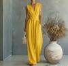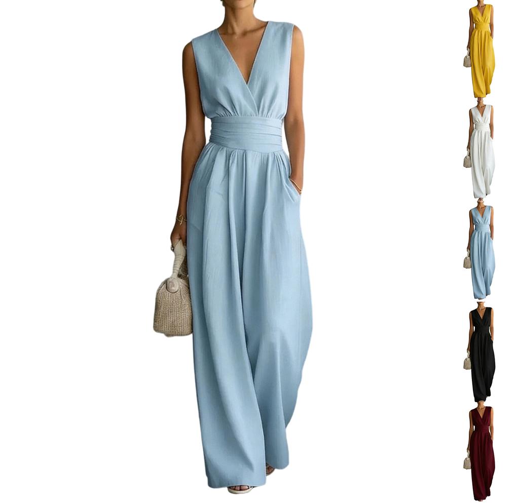 Women's Wide-leg Elegant Waist-cinching V-neck Jumpsuit
