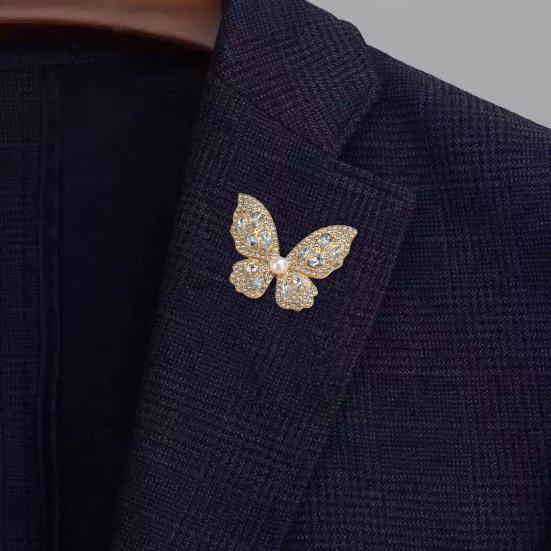 Women Brooch Three-Dimensional Butterfly Design Pin with Imitation Pearls Rhinestones Suits Coats Sweaters Badge Formal Occasions Decorative