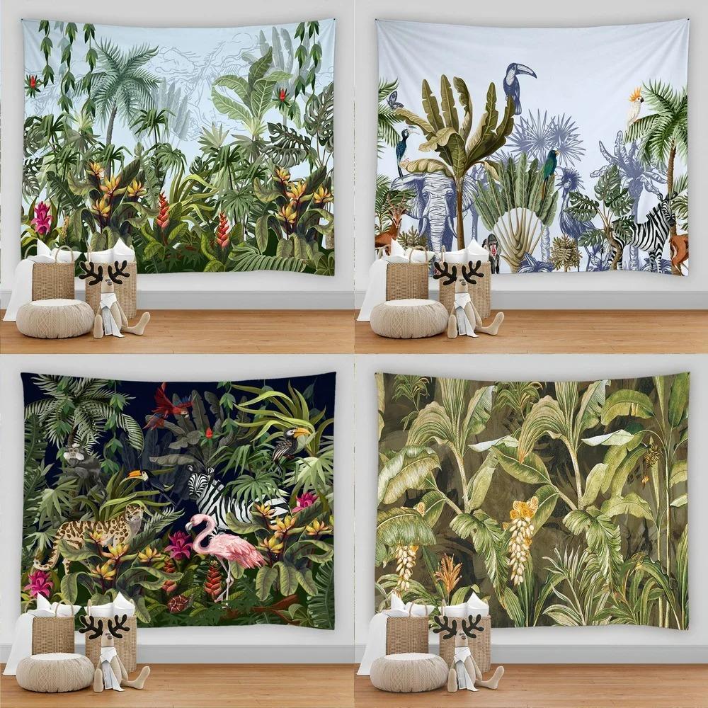 Tropical leaves flowers and birds beach wall hanging animal background palm tree wall hanging tapestry wall cloth carpet