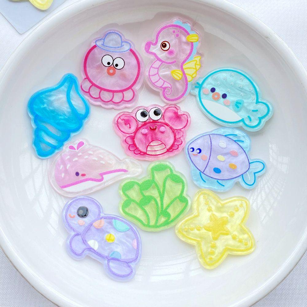 10Pcs New Cartoon Acrylic Crabs, Seahorses, Starfish Series Flat Back Cabochons Scrapbooking DIY Jewelry Craft Decoration