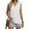 Women's Fashion Casual Lapel Sleeveless Color Shirt Women's V-Neck Up Tops
