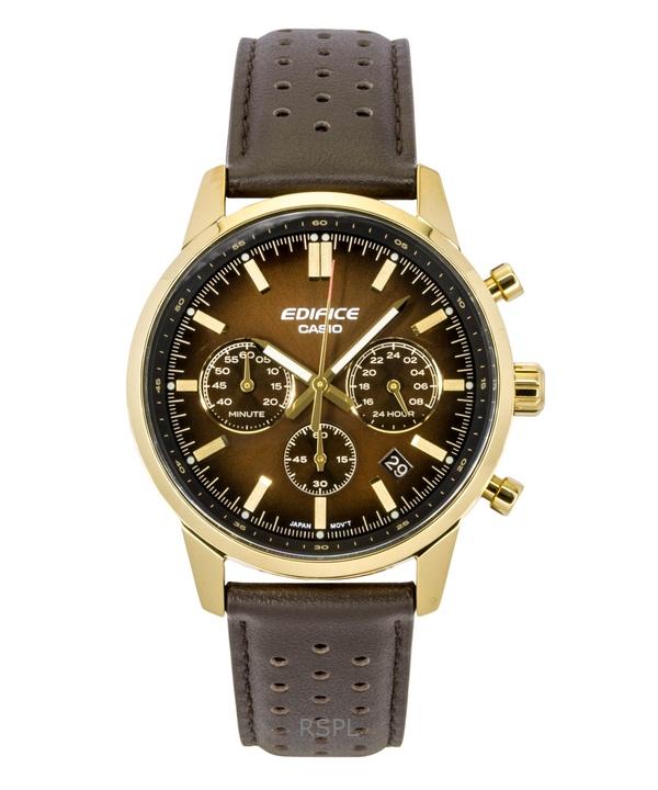 Casio Edifice Analog Chronograph Leather Strap Brown Dial Quartz EFR-575CL-5A 100M Men's Watch