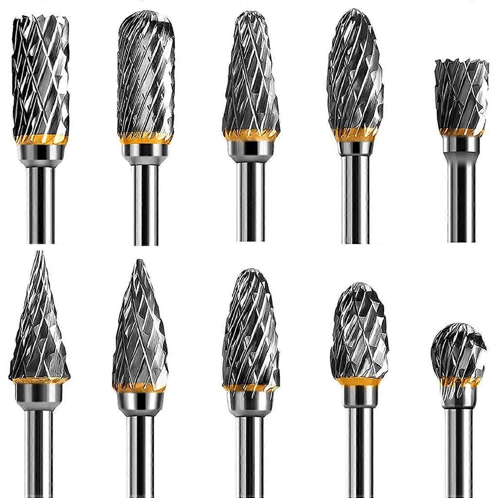 WIDE APPLICATION: 10pcs Solid Carbide Rotary Burr Set Double Edge compatible with most small rotary tools. Great choice for DIY, crafts, hobbies, home repairs, jewelry, lapidary use, modeling, and much more.