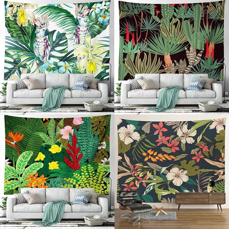 Room Decoration Bedroom Aesthetic Green Plant Flower Tapestry Tropical Plant Series Hanging Landscape Flower Indoor Tapestry