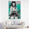 VIKAMA Samurai Japanese Anime Girl Tapestry Aesthetic Wall Decoration for Living Room and Bedroom Wall Hanging Home Decoration