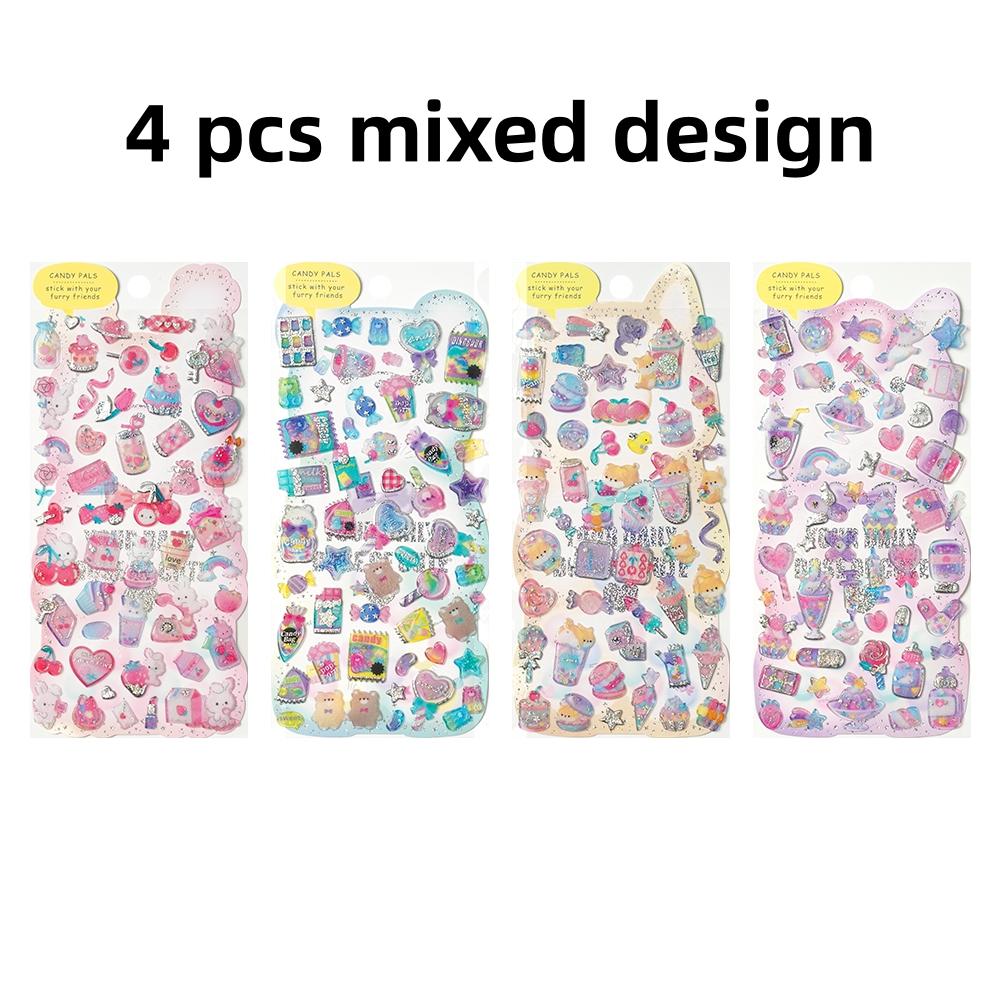 4 Pcs Candy Sweet Animals Crystal Stickers Scrapbooking Diy Journal Stationery Sticker Sheet School Supplies Gift